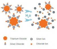 Micro-structured titanium dioxide is the carrier for the anti-bacterially active component silver chloride.  In the presence of moisutre (e.g. sweat) silver ions with anti-bacterial effect are set free.